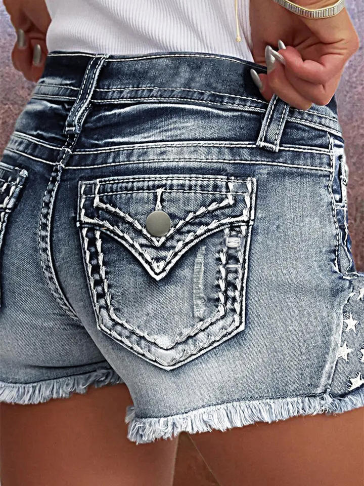 American Retro Leopard Print Distressed Super Short Jeans Femmes Black Denim Shorts Vintage Low Waist Hip-Covering Jeans Y2k