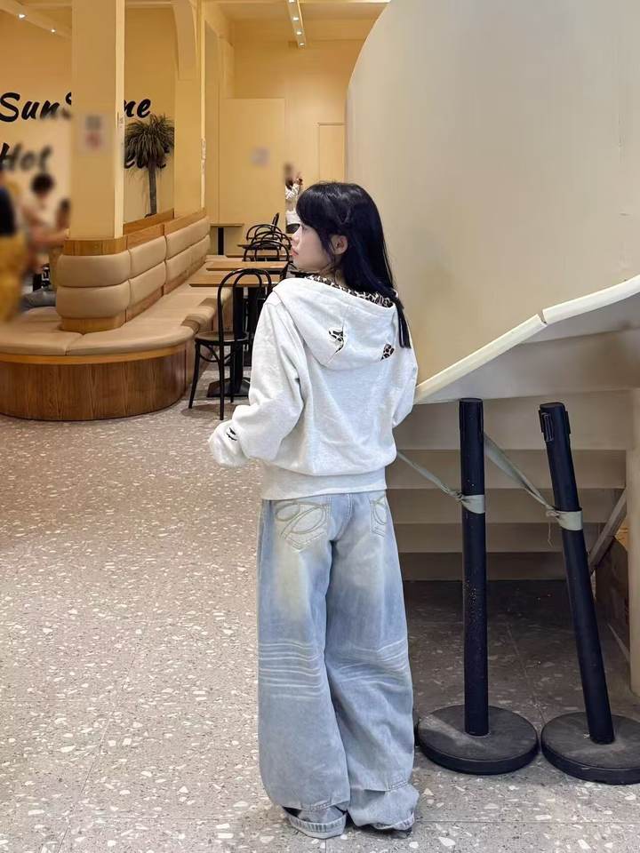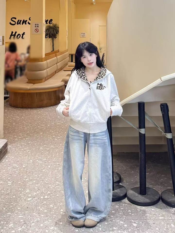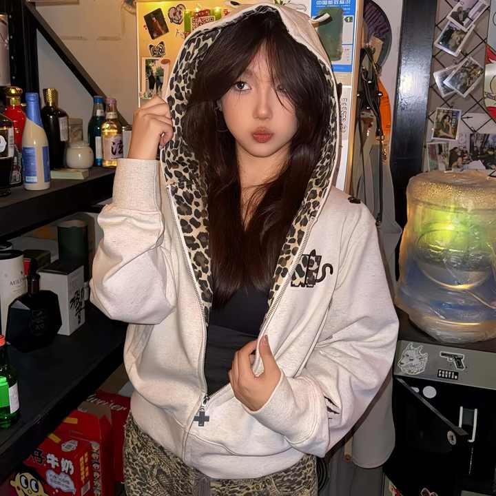 Sweat à capuche imprimé léopard Little Devil rétro américain pour homme, veste décontractée haut de gamme brodée pour le printemps/automne