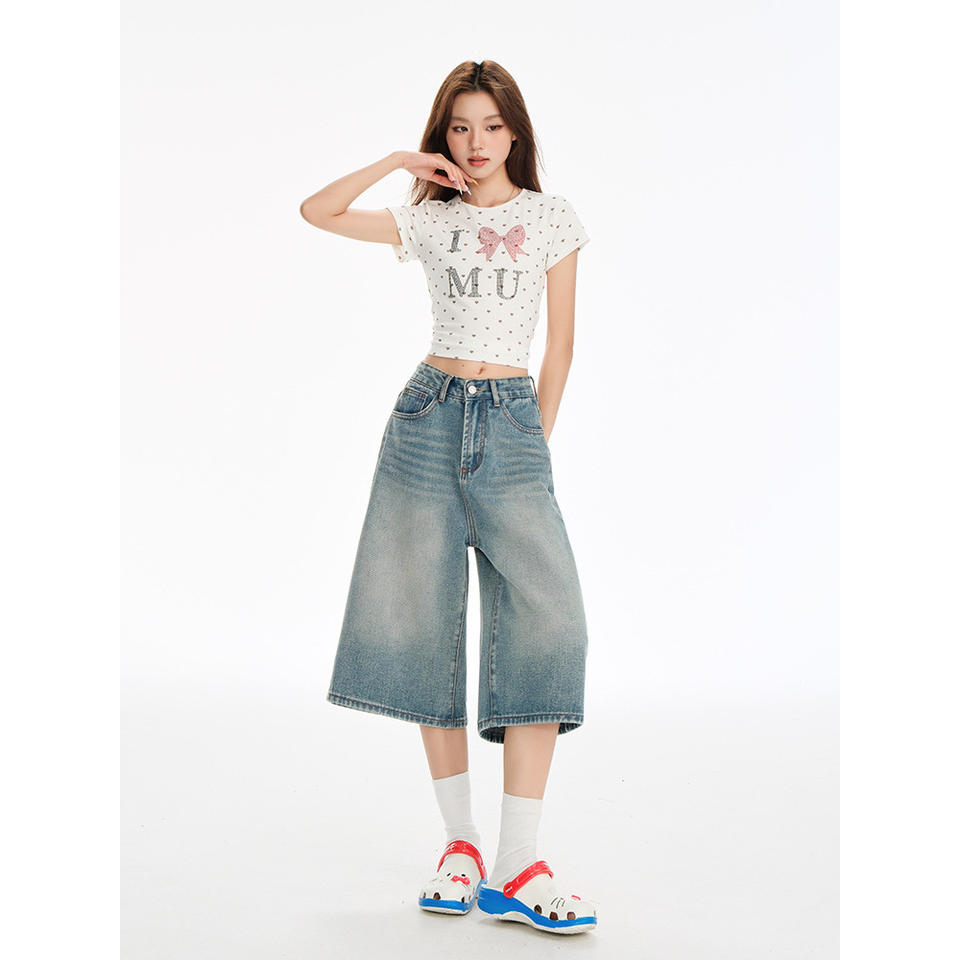 Jean d'été en coton bleu pour femme, style rétro américain, taille haute, coupe slim, polyvalent, mi-long, nouveau, ample, jambe large, court, XL