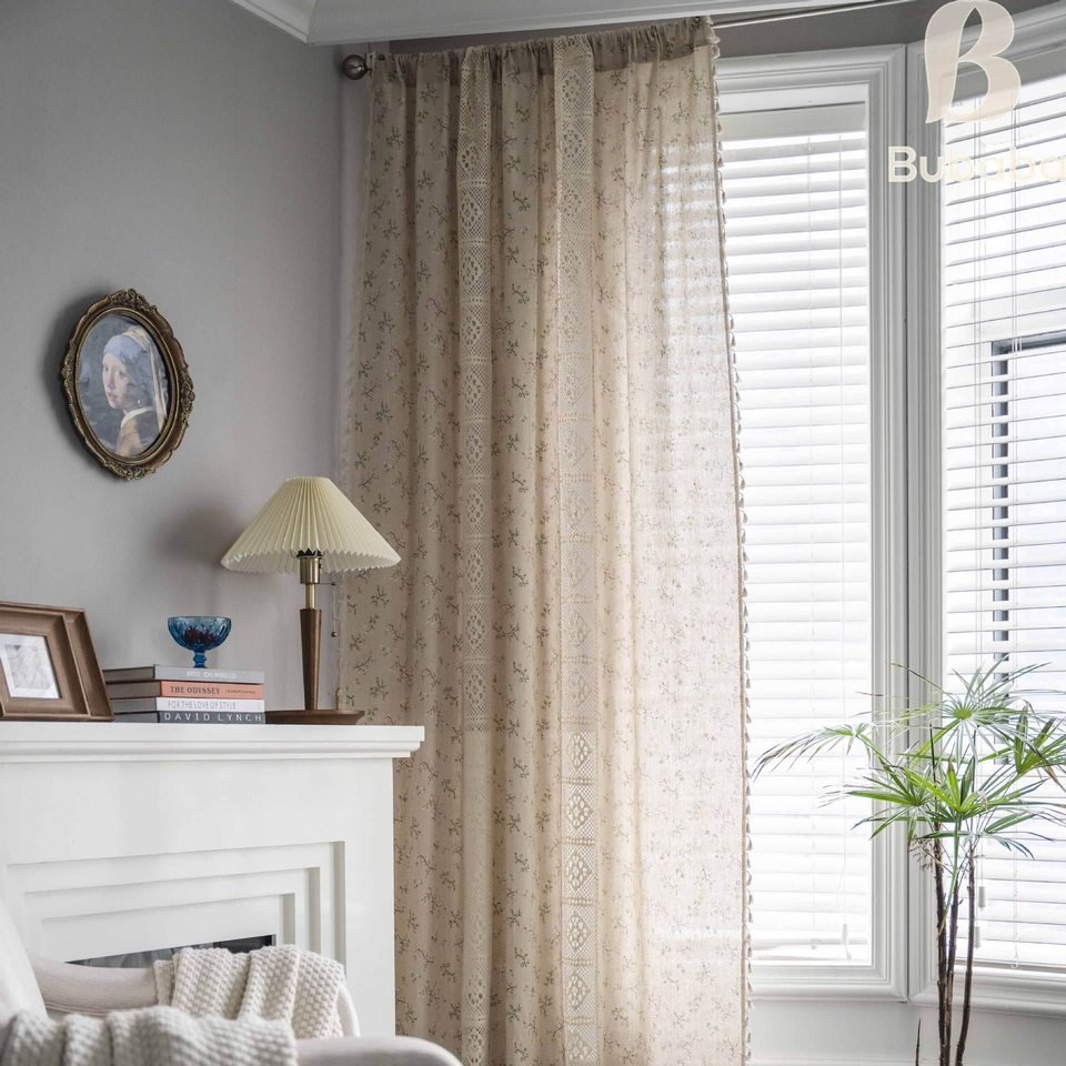 Rideau de séparation en dentelle carrée américaine, court, pour fenêtre flottante, rideau de cuisine, semi-occultant, motif floral bohème