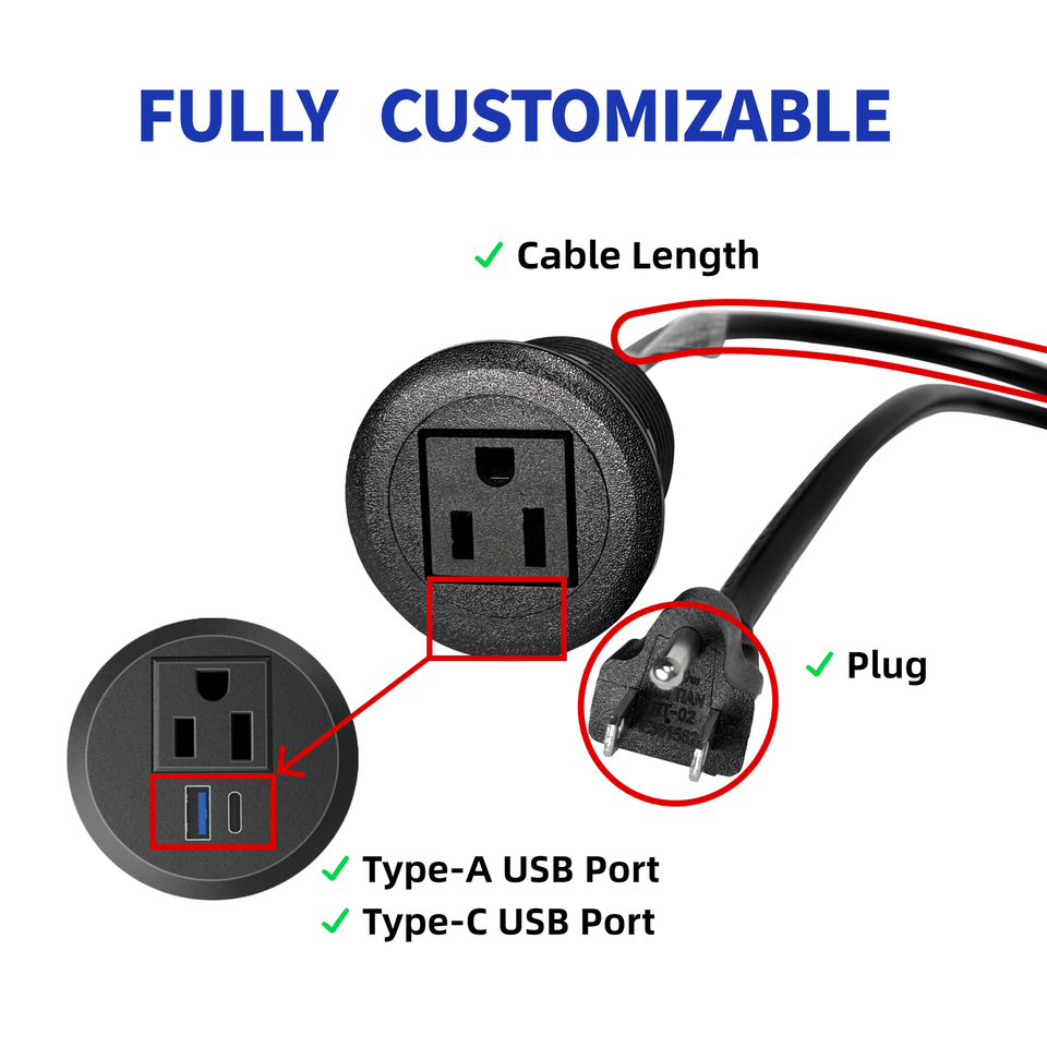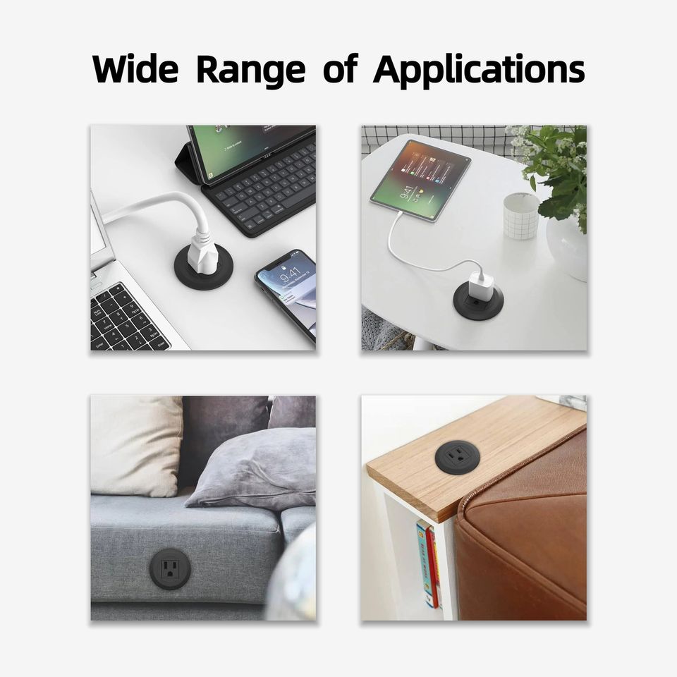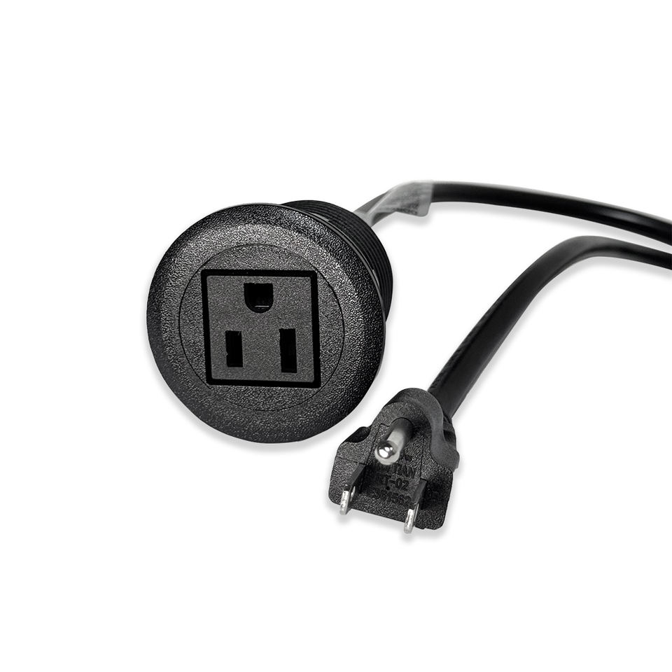 Prise de courant ronde miniature noire standard américaine, prise de bureau, 15A, 1 prise standard américaine pour bureau, table de chevet, armoire, comptoir