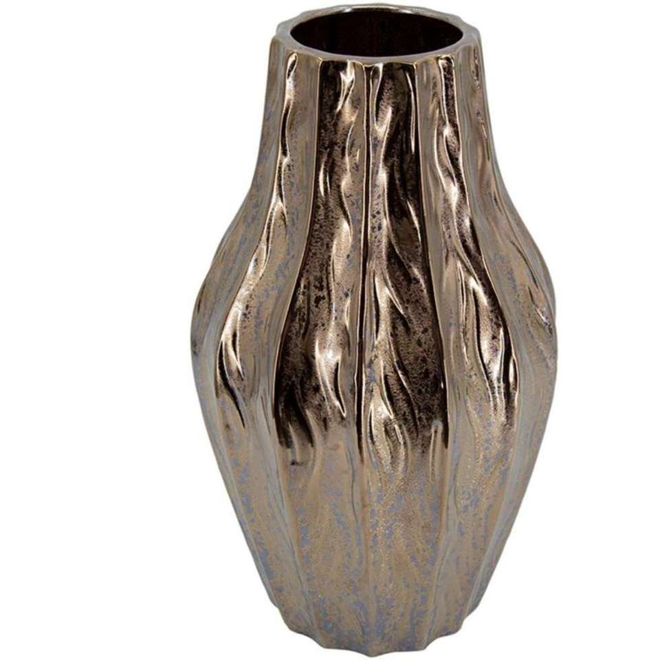 Vase à fleurs en métal gaufré doré