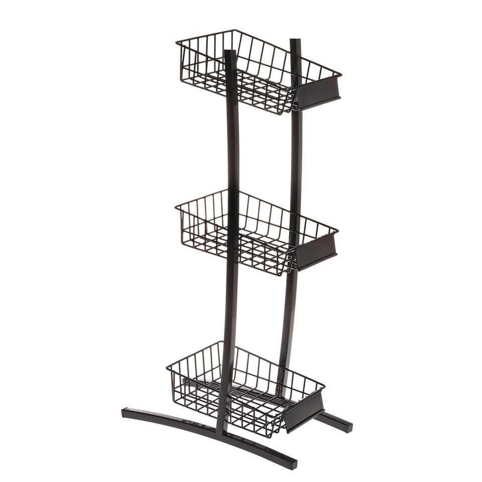 Panier en fil de fer noir de style américain avec revêtement en poudre, 3 niveaux, taille personnalisée pour le rangement sur la table de cuisine