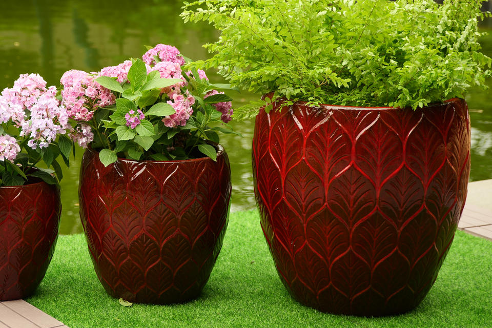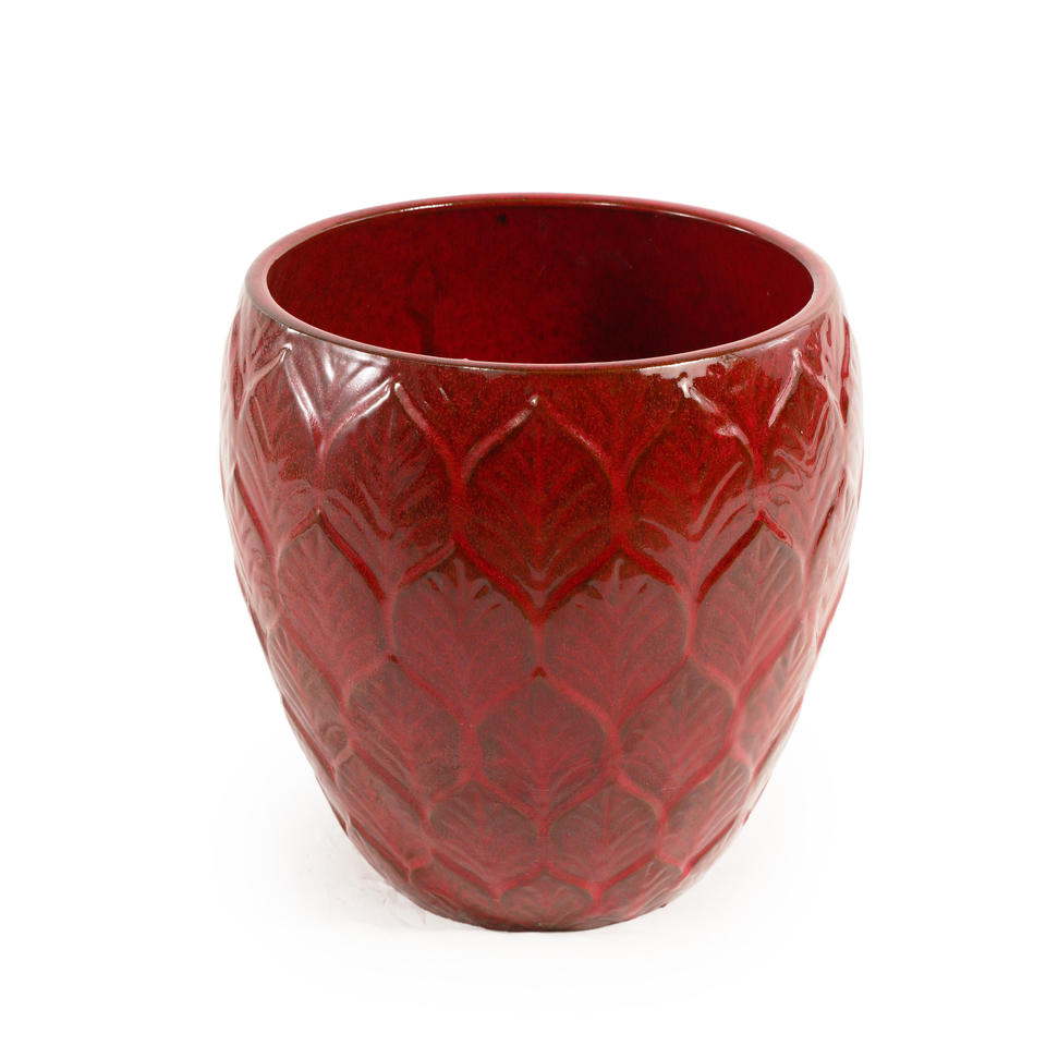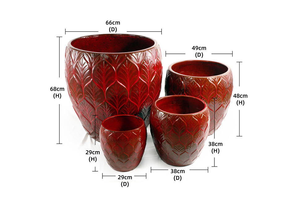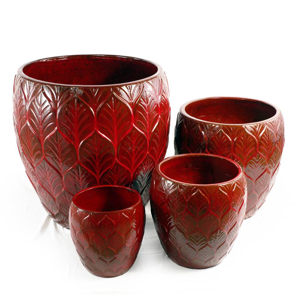 Ensemble de pots à fleurs en céramique de style américain avec trou de drainage, finition brillante, texture gaufrée feuille de Bourgogne, pour intérieur et extérieur, maison et jardin