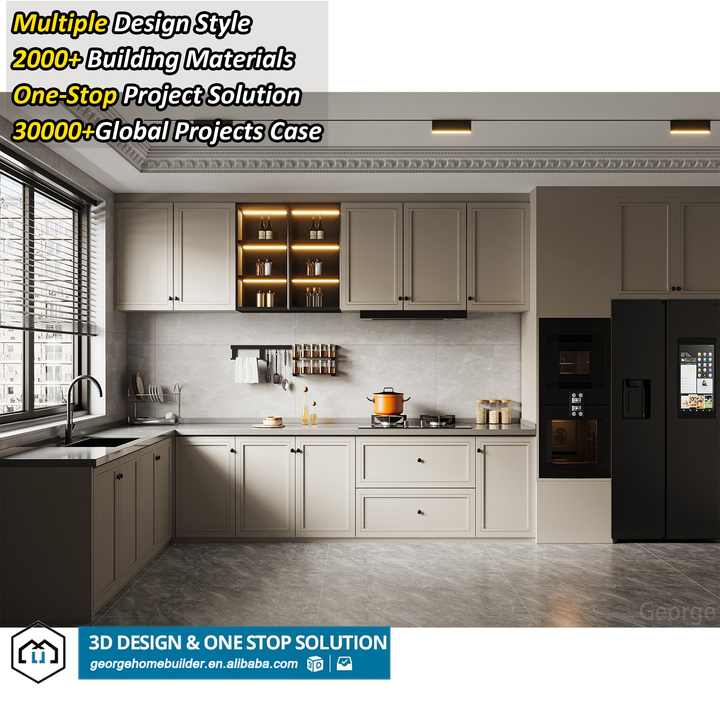 Accessoires:Dosseret, Tiroir panier, Coulisse, Robinet, Poignée et bouton, Charnière, Stockage à plateau tournant, Boîtes de riz, Cabinet de base d'évier, Coup de pied, Conteneur de déchets