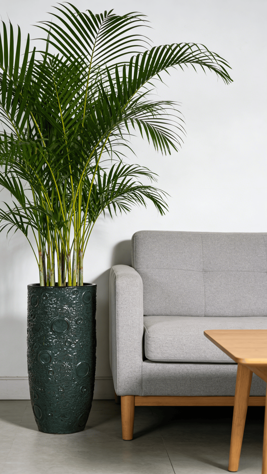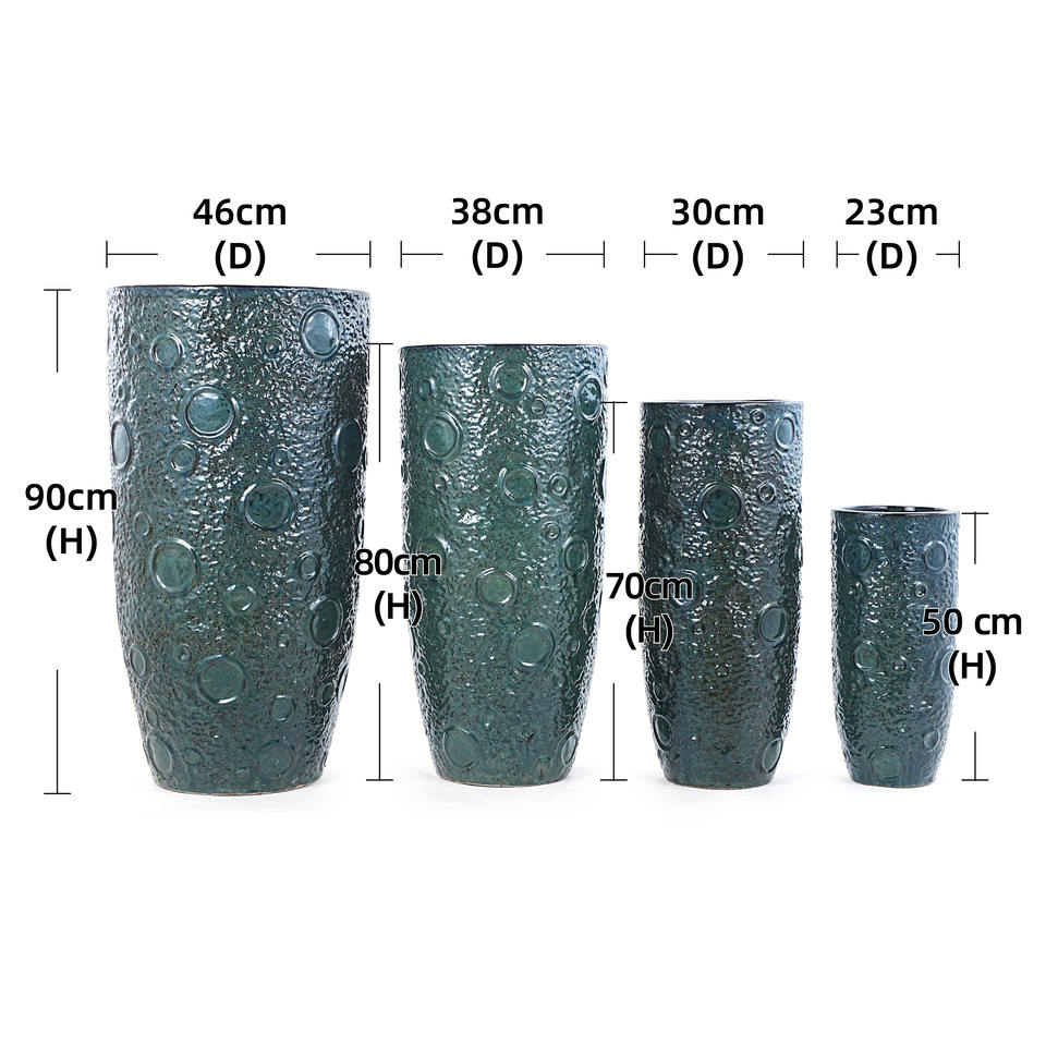 Pot de fleurs décoratif haut en céramique texturée vert foncé style américain, écologique et durable, avec trou de drainage, pour intérieur et extérieur