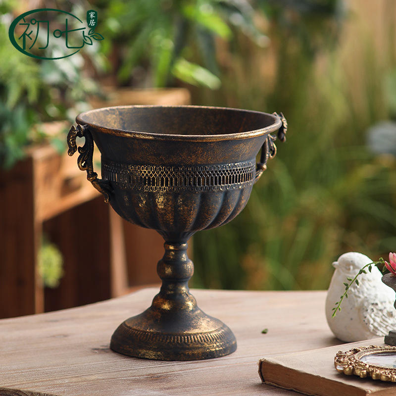 American Style Distressed Mini Flower Pot With Carved Design For Desktop Artificial Flower Decorations
