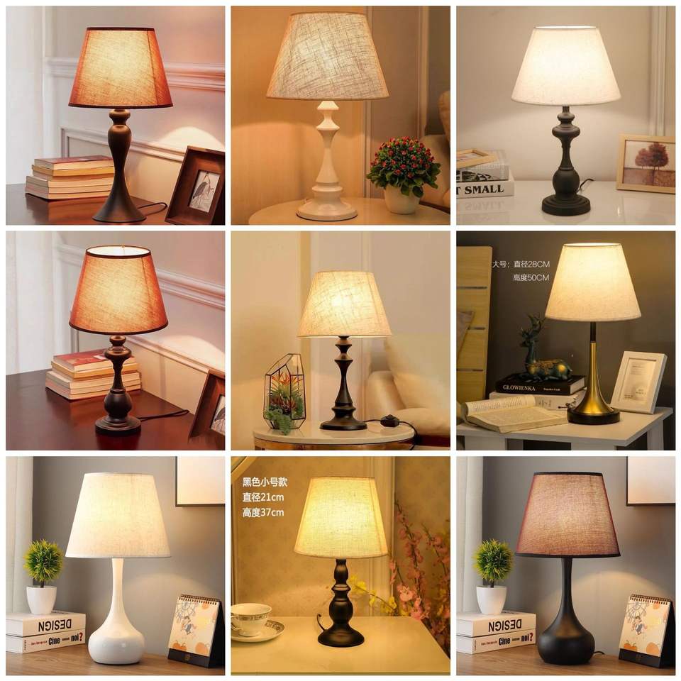 Lampe de table en tissu de style américain, minimaliste nordique, haut de gamme, avec capteur, pour la décoration de la chambre à coucher, lampe de chevet, petite lampe de table transfrontalière