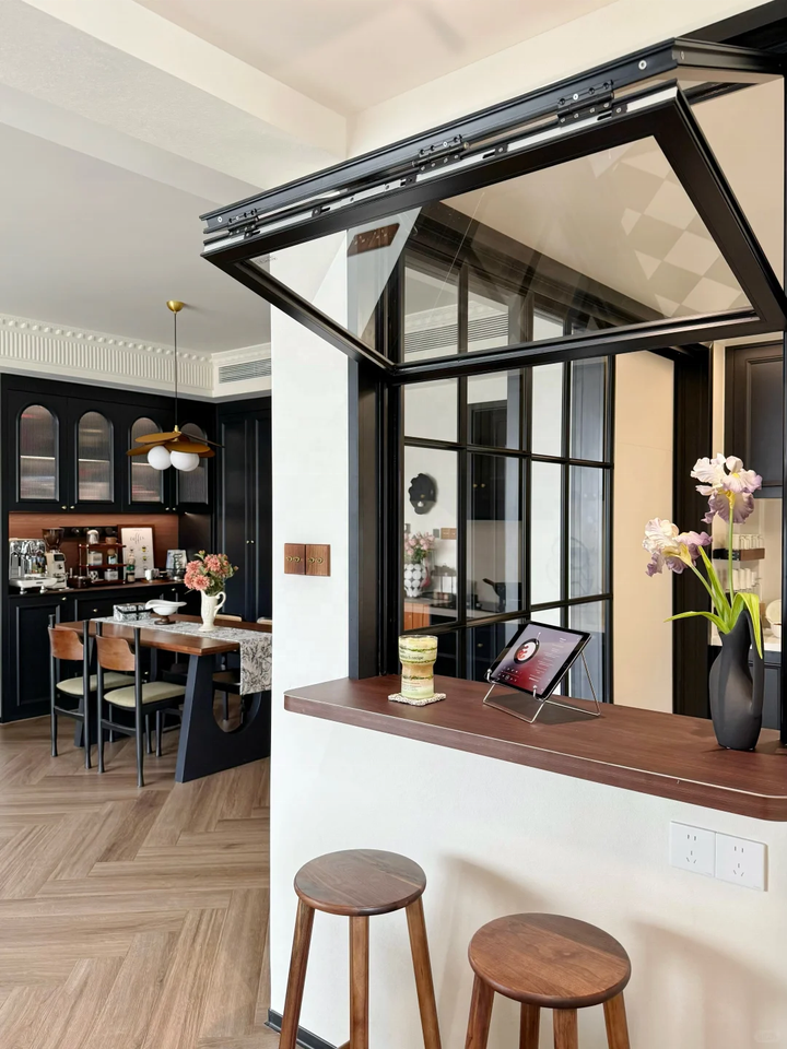 Fenêtre pliante de style américain avec arrêt à positionnement arbitraire, fenêtre pliante personnalisée pour cuisine et salle à manger