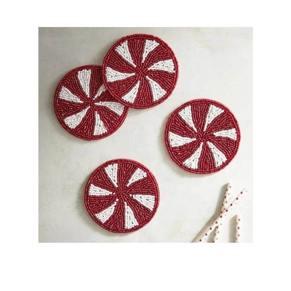 Ensemble de 4 sous-verres en perles de verre de style américain à rayures pour café, boisson, table à manger, cuisine et décoration intérieure