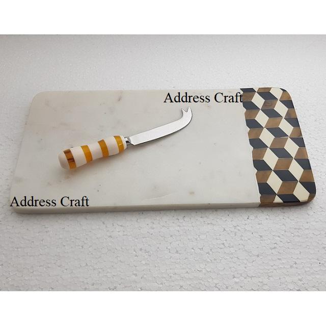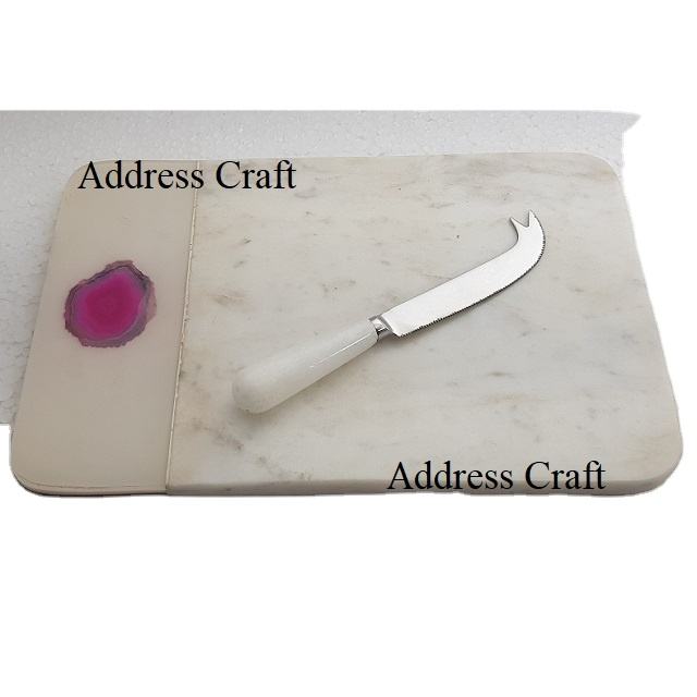 Planche à découper en marbre style américain Couteau à fromage en acier de qualité supérieure avec manche en pierre Ensemble élégant de planche à fromage pour ustensiles de cuisine