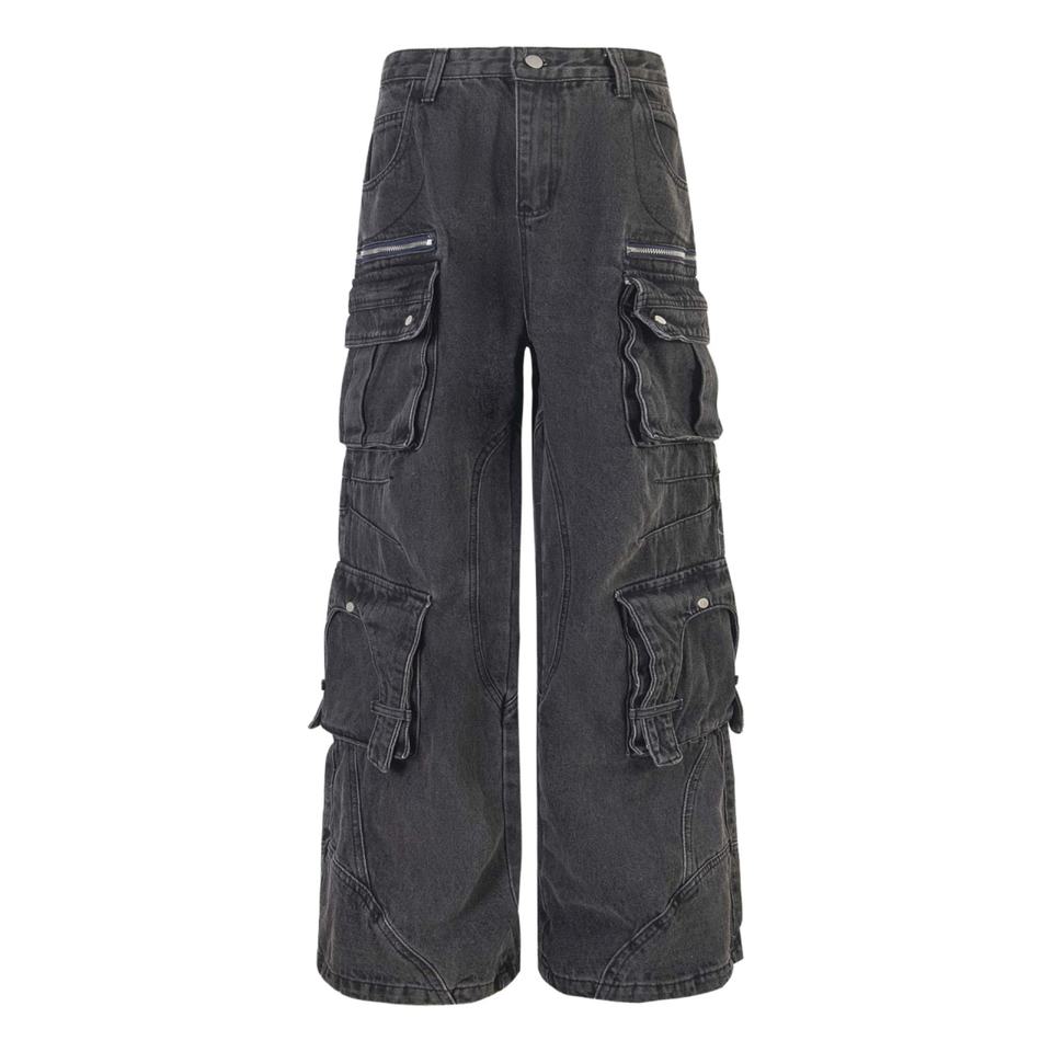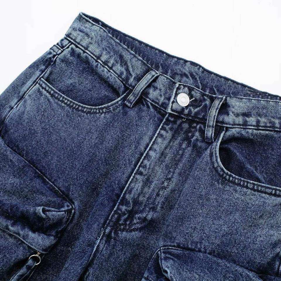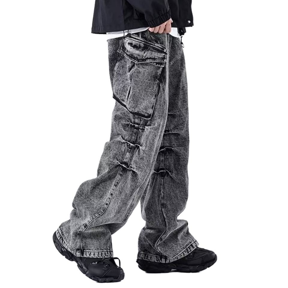 Jeans à jambes larges rétro pour hommes de style américain Denim délavé Multi-poches Taille mi-haute Pantalons à jambes droites amples pour le commerce extérieur