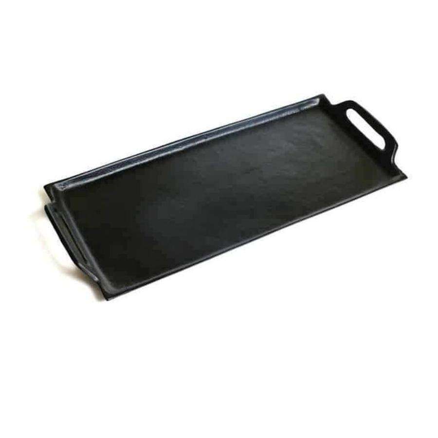 Plateau de service en métal de style américain avec poignées fantaisie, fournitures pour hôtels et restaurants, plateaux décoratifs, finition noire