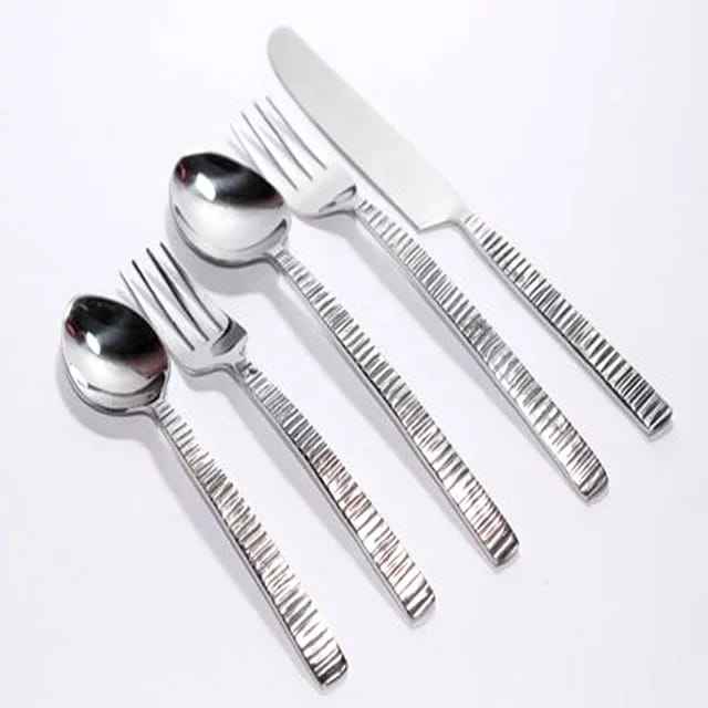 Ensemble de couverts en acier inoxydable plaqué argent de style américain moderne, design de créateur, compatible lave-vaisselle, cinq pièces