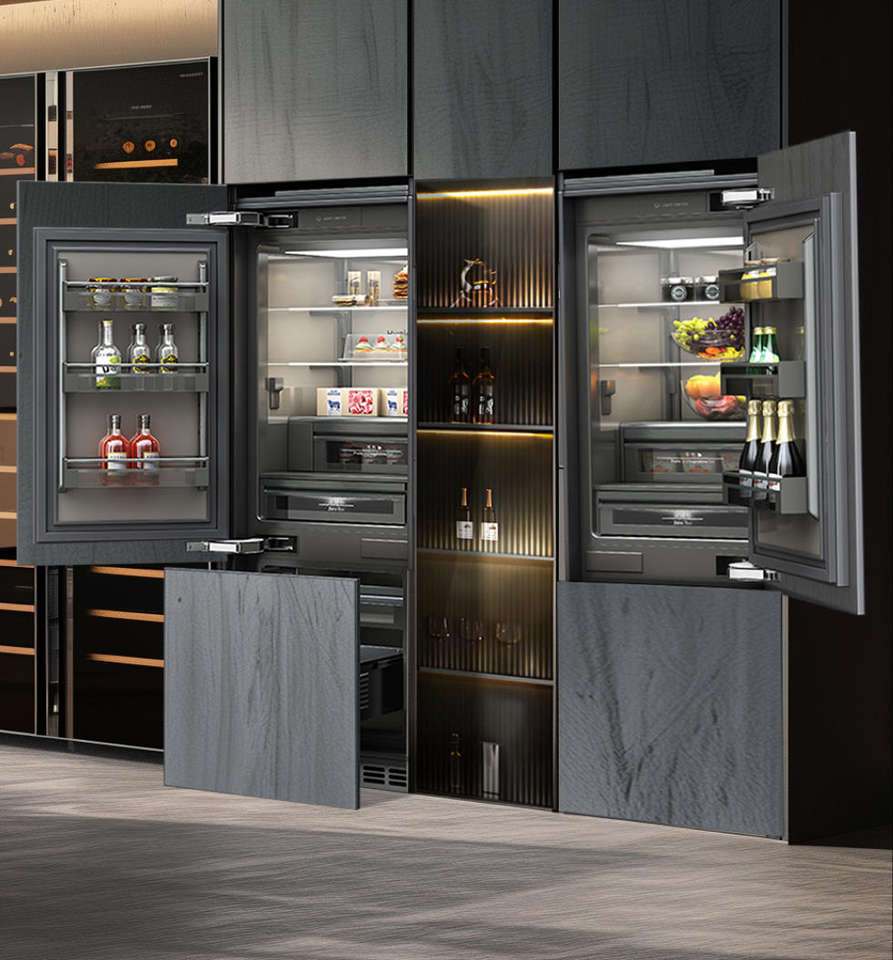 Réfrigérateur américain à portes françaises en acier inoxydable sans givre, prêt pour les panneaux, 30 pouces, congélateur inférieur, eau, ménage, hôtel