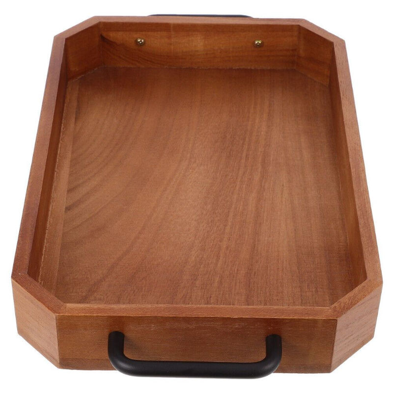 Plateau de service alimentaire en bois de forme rectangulaire de style américain avec poignées, plateau de service alimentaire multifonctionnel pour la cuisine
