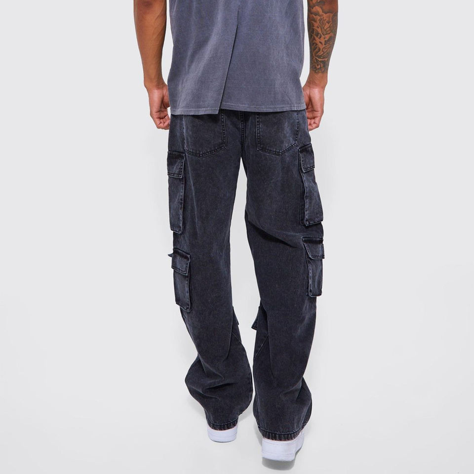 American-Style Retro Washed Black Hip Hop Breathable Jeans Men Casual Denim Medium Front Pockets Straight Loose Wide-Leg Pants
