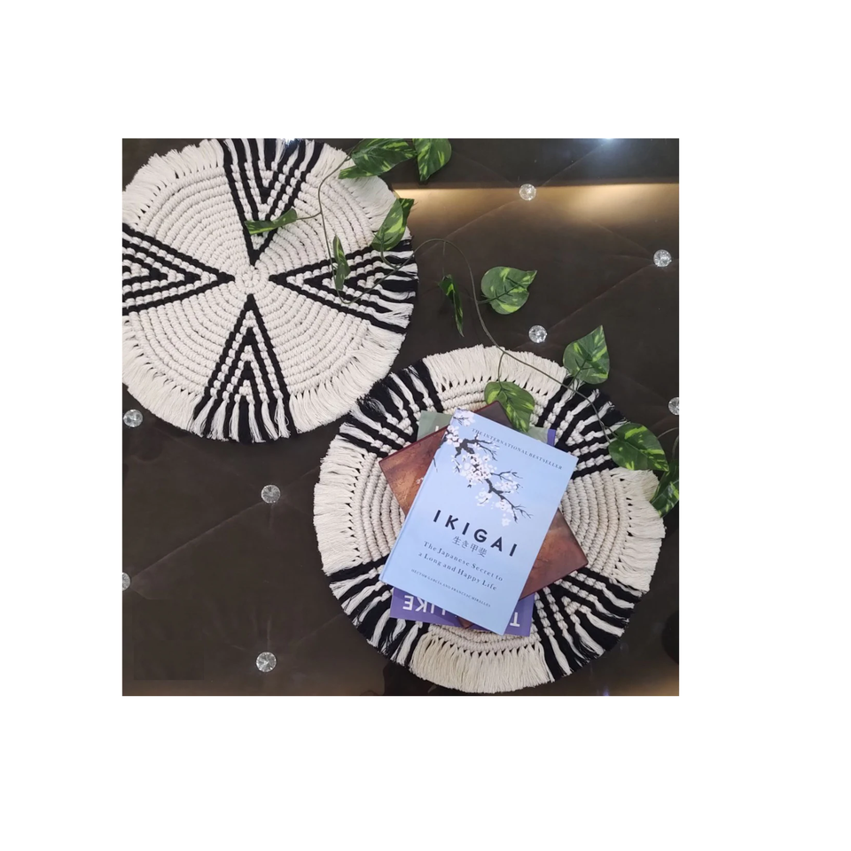Napperons en macramé faits à la main de forme ronde de style américain en couleur grise Dessous de verre de table pour le dîner Accessoires de décoration intérieure