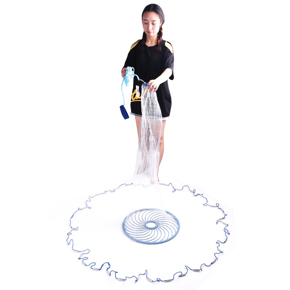 Épuisette de pêche en eau salée de style américain avec lestes en plomb véritable, maille de 3/8 pouce pour appâts, rayon de 4 à 12 pieds