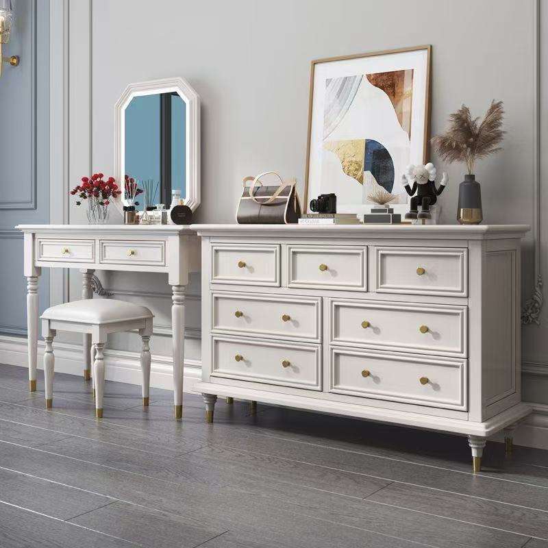 Commode en bois massif de style américain avec tiroirs, armoire de rangement pour chambre à coucher, style français