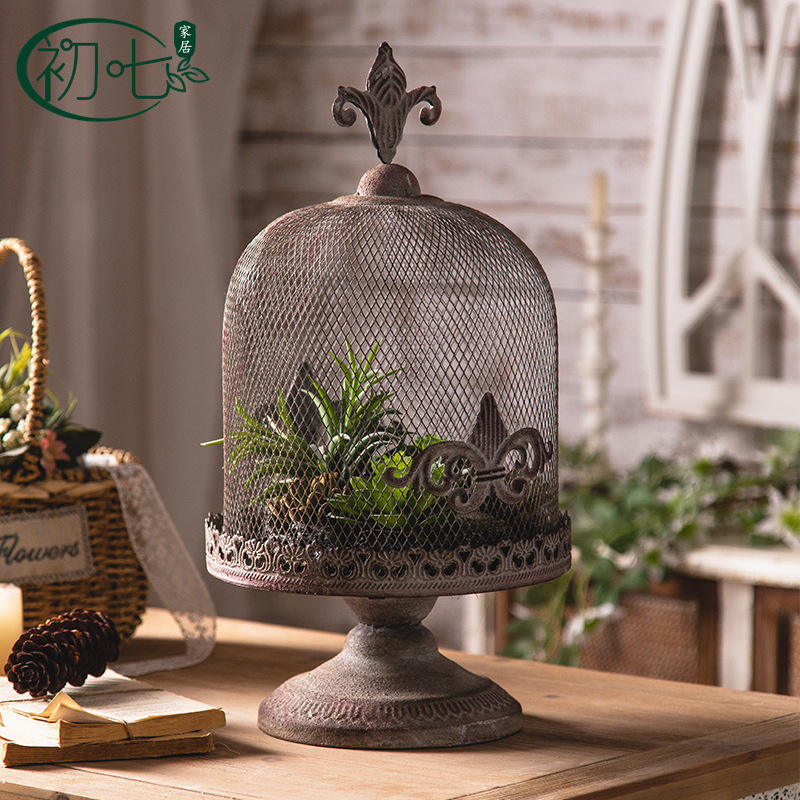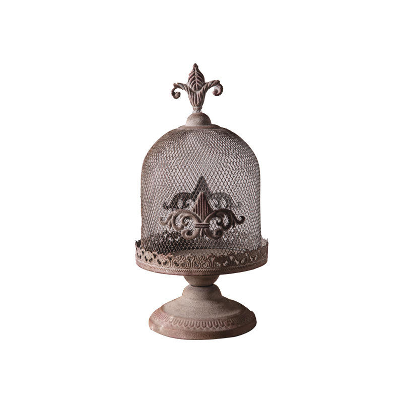 Porte-bougie en fer forgé de style américain, design cage à oiseaux vintage, décoration d'intérieur, artisanat métallique pour chambre d'hôtes et chambre à coucher