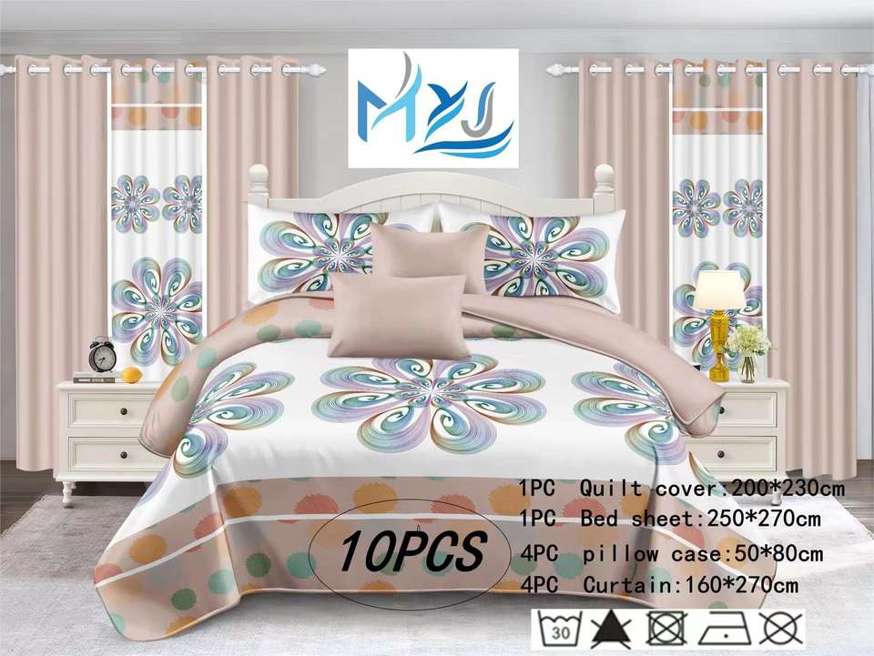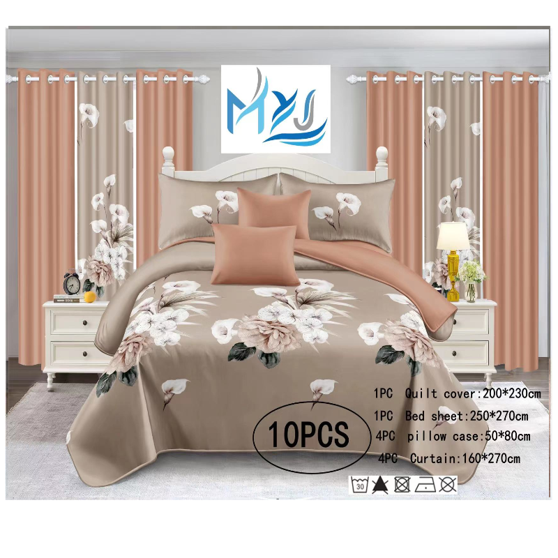 Ensemble de literie et de rideaux de chambre à coucher de style américain, 10 pièces, gris kaki, à fleurs