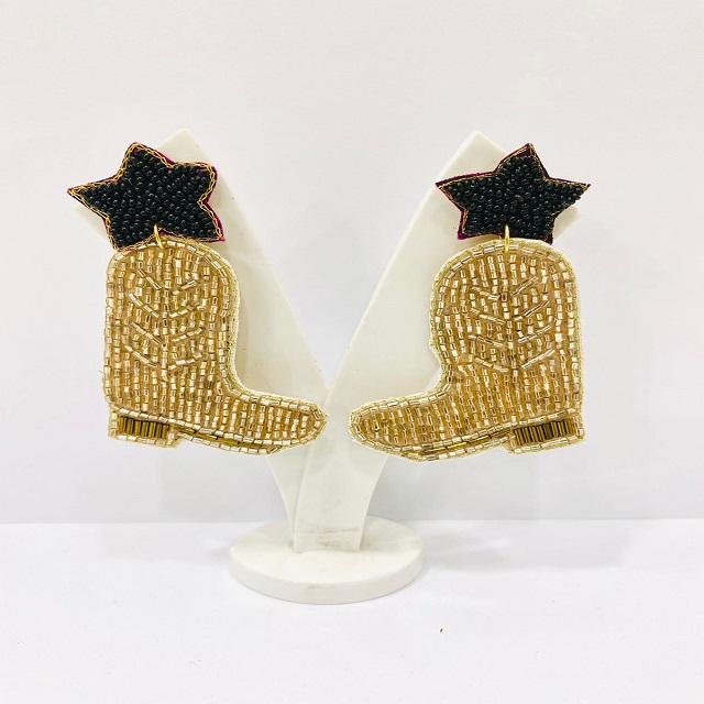 Tendance américaine Boucles d'oreilles en tissu faites à la main Chapeau et botte Graine de riz Perlée Déclaration de tous les jours-Boucles d'oreilles personnalisables