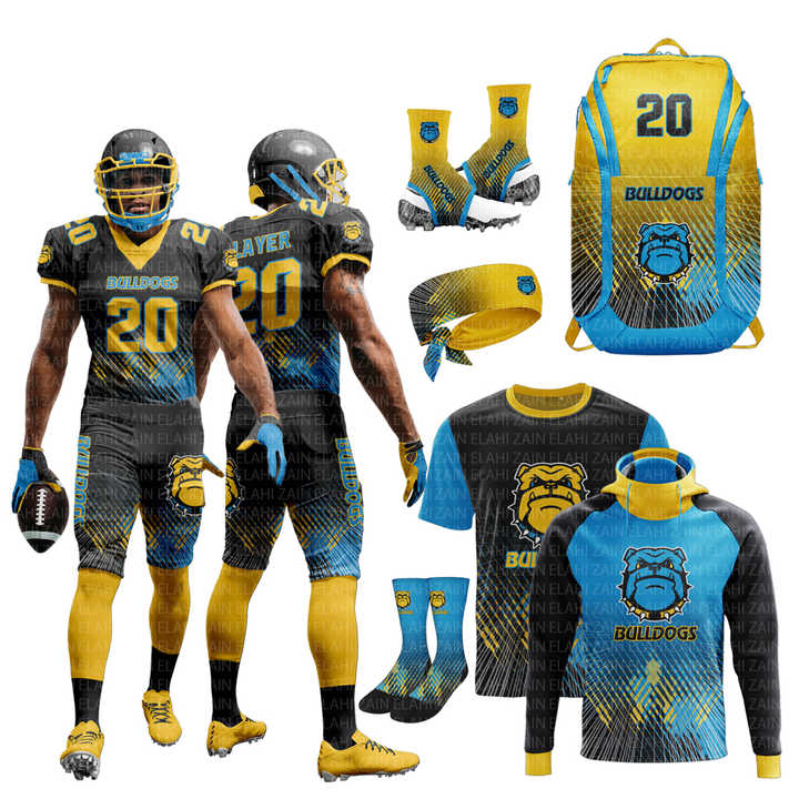Forfait meilleure vente Football américain Uniforme personnalisé sublimé équipe porter des ensembles de maillots, sacs à dos, paquets de sweat à capuche