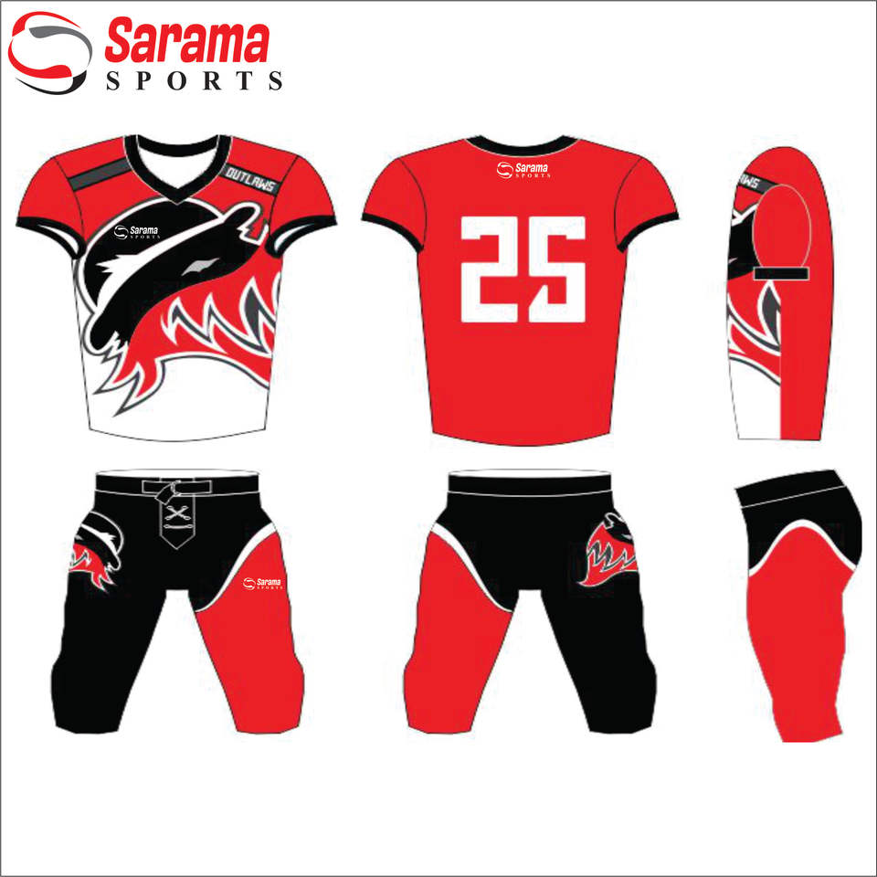 Uniformes de football américains personnalisés par sublimation, nouveau design respirant, uniformes de pratique et de jeu américains bon marché.