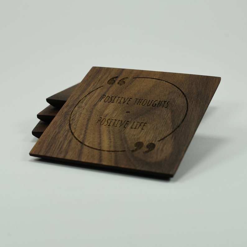 Ensemble de 4 sous-verres en bois de noyer américain de style vintage avec citations inspirantes gravées au laser