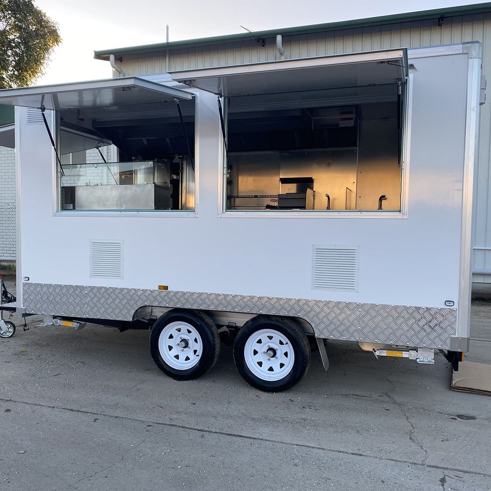 American full-kitchen snack food truck, mobile food trailer, fully equipped pizza, ice cream restaurant, square catering trailer