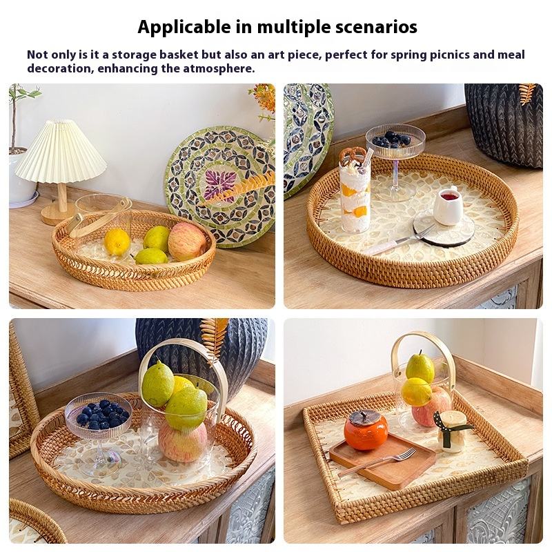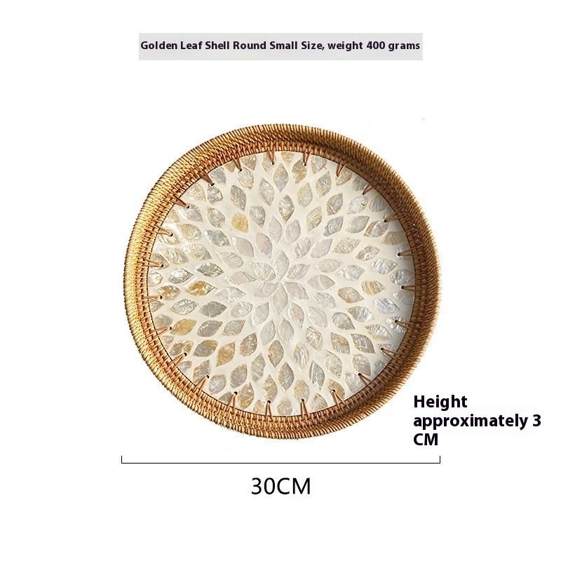 AmericanStyle Minimalist Luxury Rattan Shell Creative Golden Storage Tray for Household Living Room Coffee Restaurant Use
