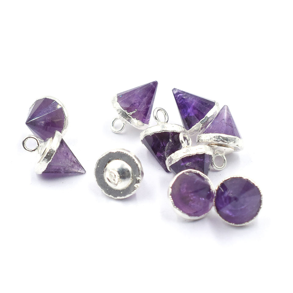 nom ou mots:Pendentif plaqué argent en forme de cône d'améthyste