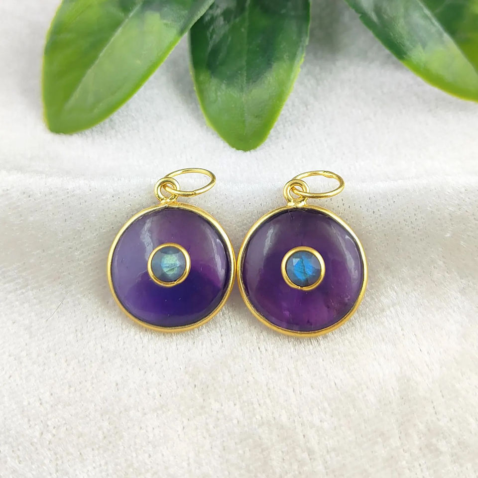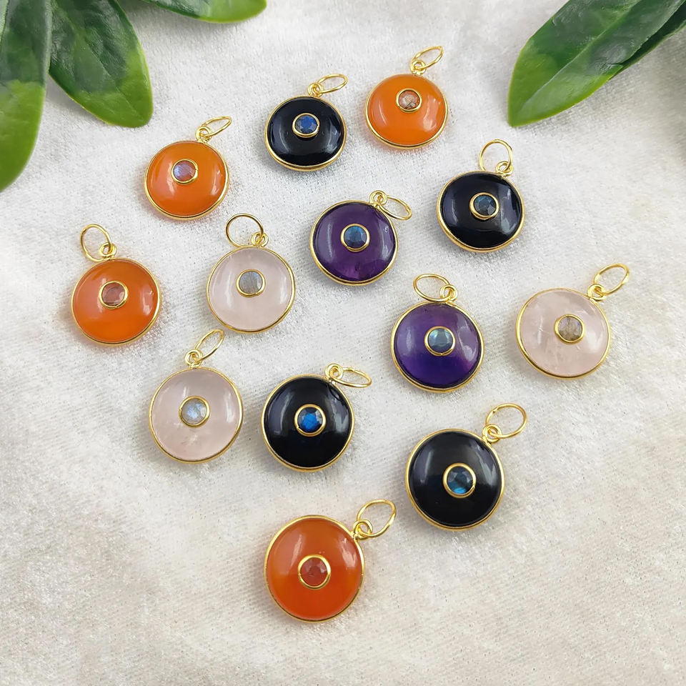Product Name:Gemstone Double Stone Silver Bezel Pendant