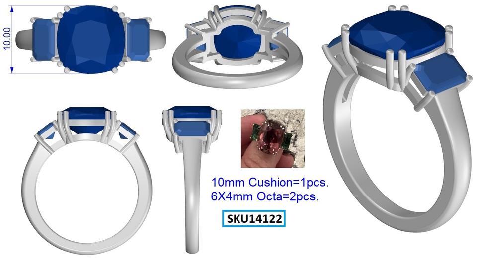 Stone Size:10 MM Cushion & 6x4 MM Baguette