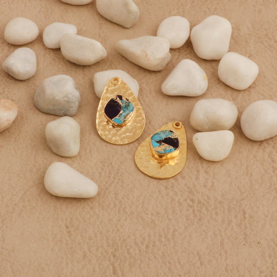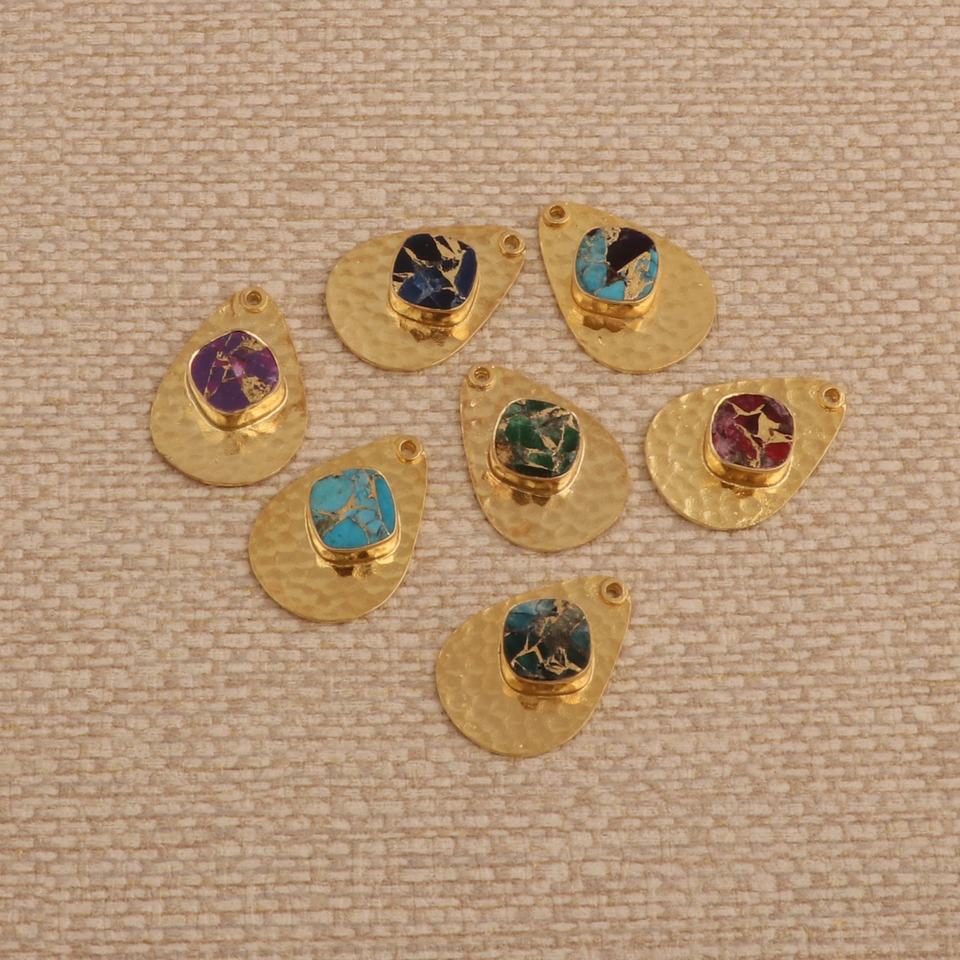 Améthyste Mohave Jade Gemstone Textured Square Connector Charm Unique Pattern Handmade 18K Gold Plated DIY Earrings Necklaces