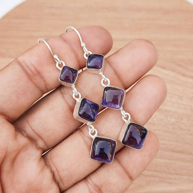 Boucles d'oreilles Améthyste Multi Stone Boucles d'oreilles pendantes plaquées argent 925 faites à la main Boho Crystal Jewelry Gift for Her Purple