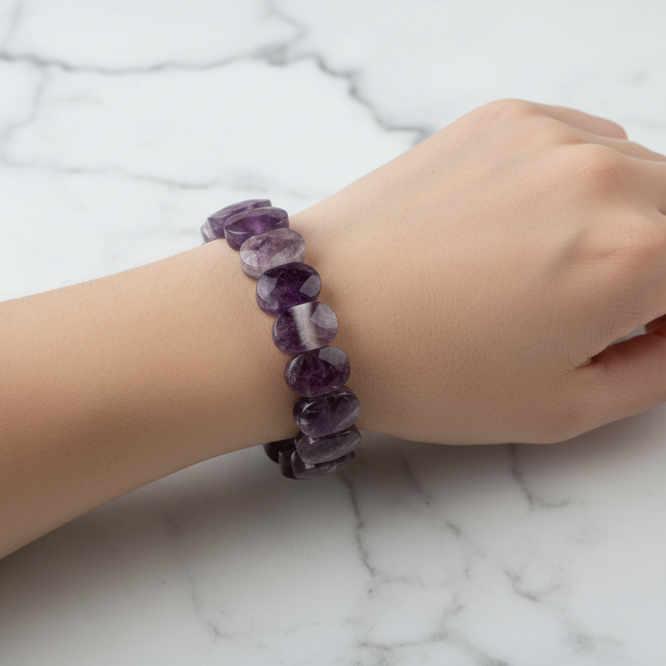Amethyst Natural Stone Wide Cut Bracelet