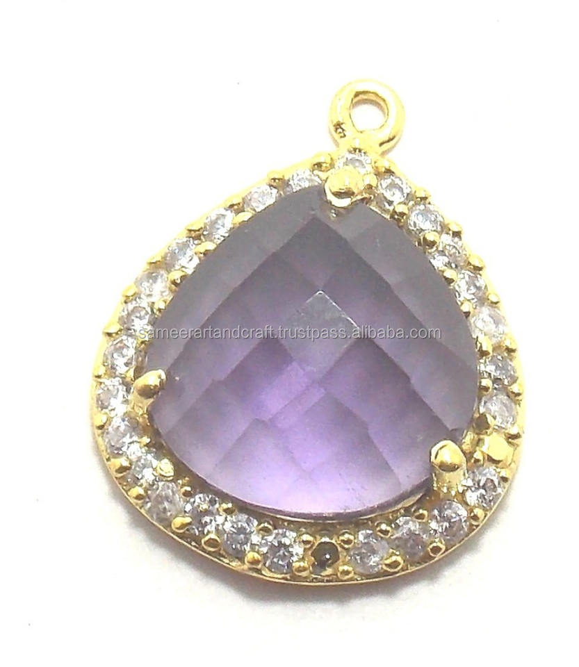 Nom du produit:Connecteur à lunette plaqué or avec améthyste, quartz, zircon cubique et pierre précieuse