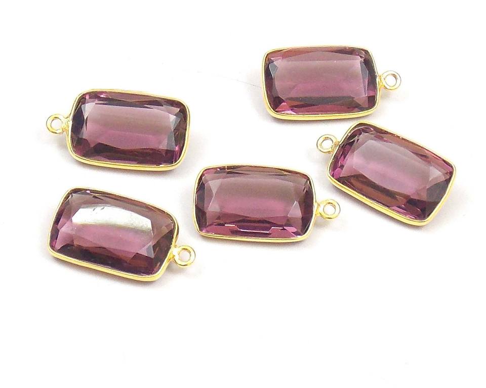 Quartz Améthyste avec pierre précieuse en forme de rectangle plaqué or, connecteur de lunette en métal pour bijoux, cadeau pour elle.