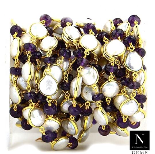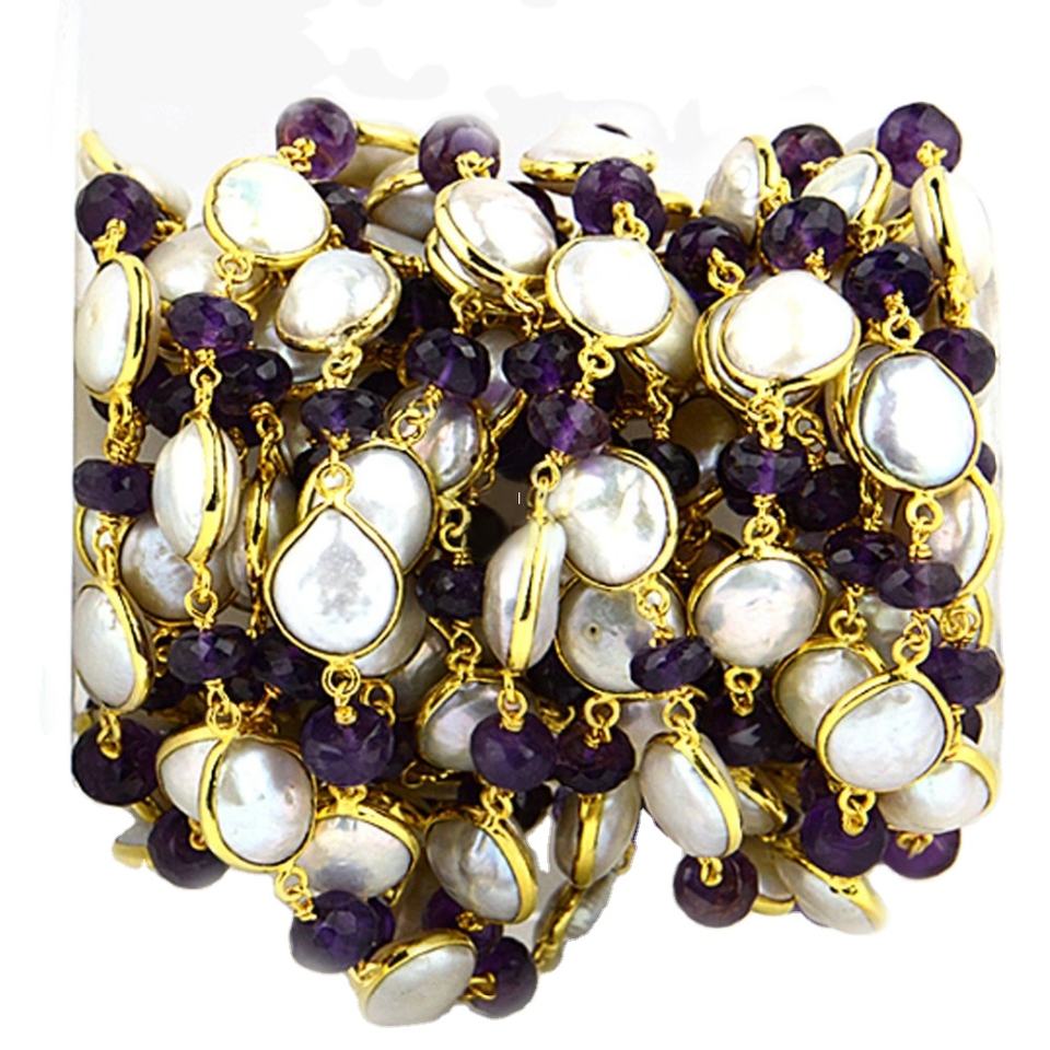 Améthyste ronde 7-8MM Chaîne de connexion DIY Wire Wrap Brass Gold Plated Rosary Pearl Women Colliers Making Jewelry DIY Bulk Chains