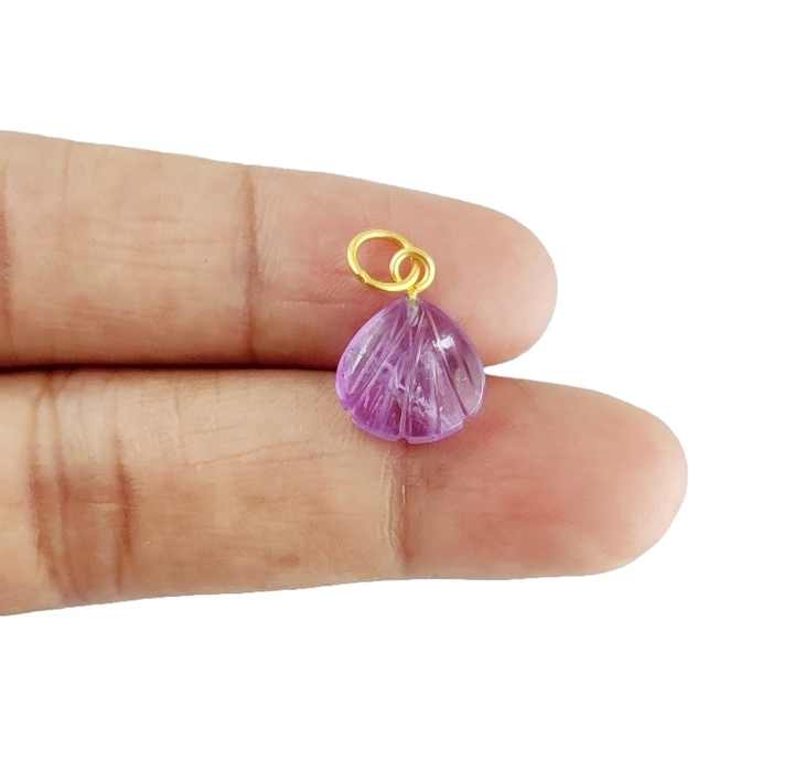 Pendentif améthyste en coquillage sculpté 12mm sculpté à la main en argent sterling plaqué or 18 carats avec fil enroulé pour enfants