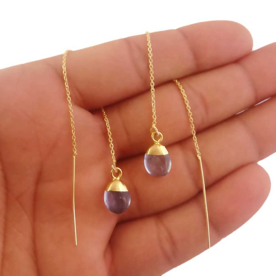 Boucles d'oreilles pendantes en améthyste, plaquées or, tendance, délicates, pour mariage et fête, cadeau pour elle