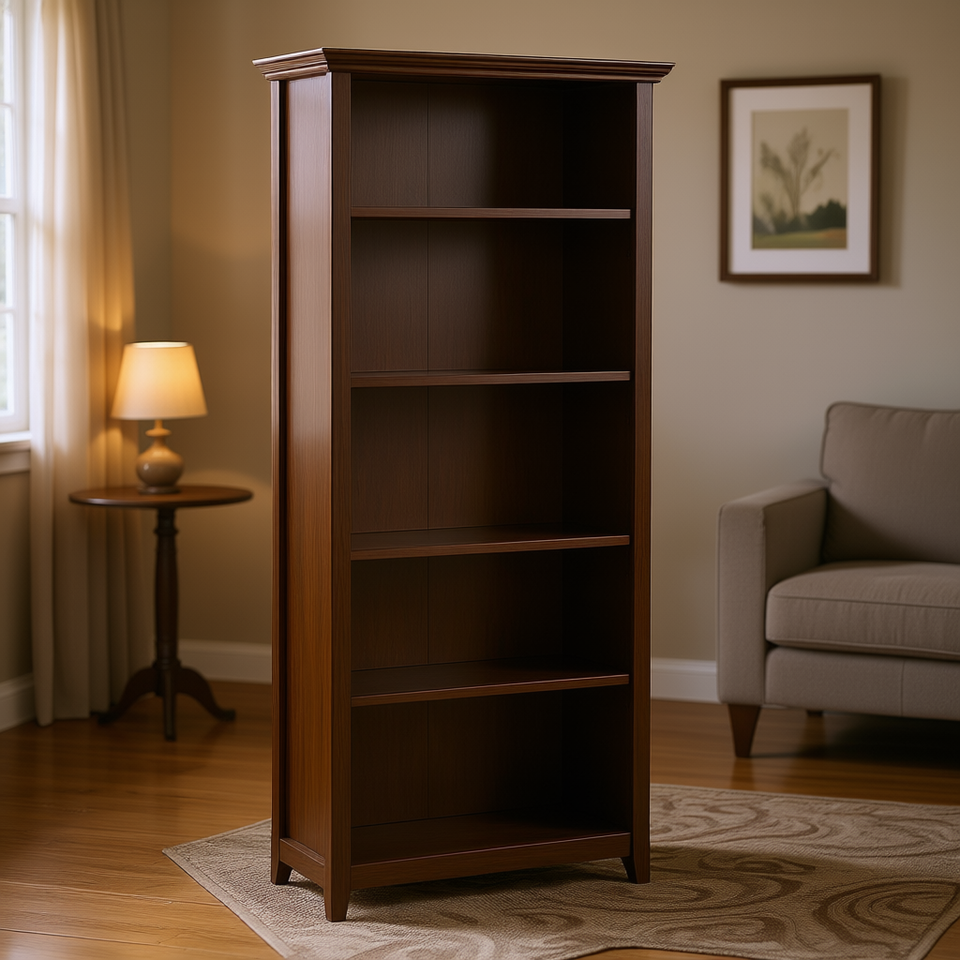 Bibliothèque Amherst à 5 étagères en bois de hickory brun, design traditionnel, meubles de salon