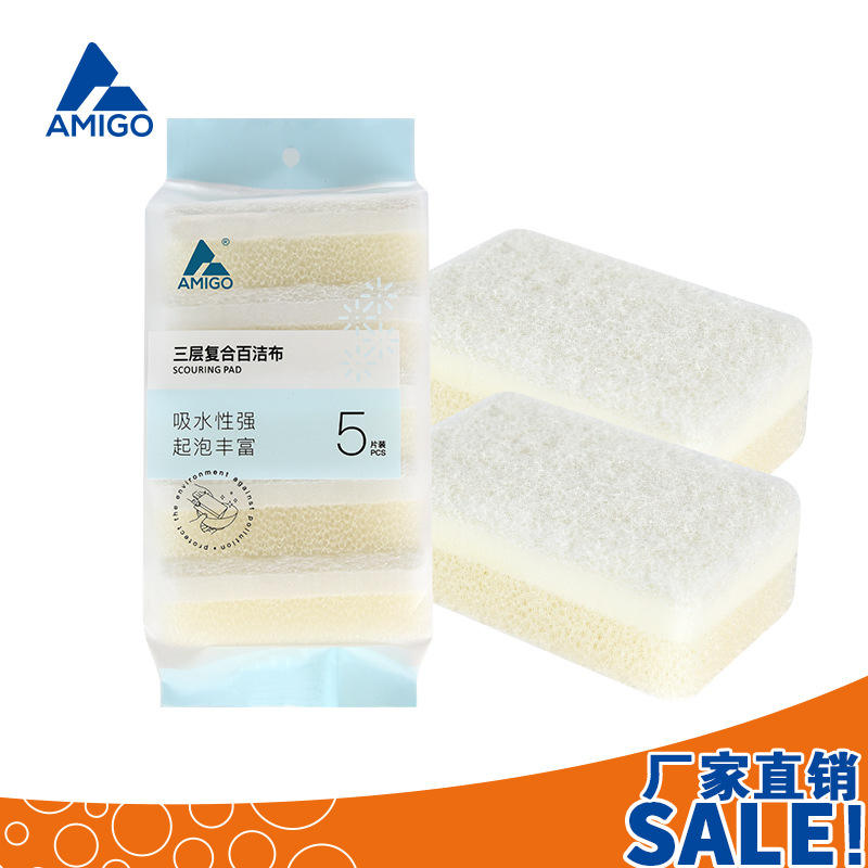 Éponge filtrante à sable Amigo 3 en 1, rectangulaire, blanche et grise, pour le nettoyage des casseroles et des poêles