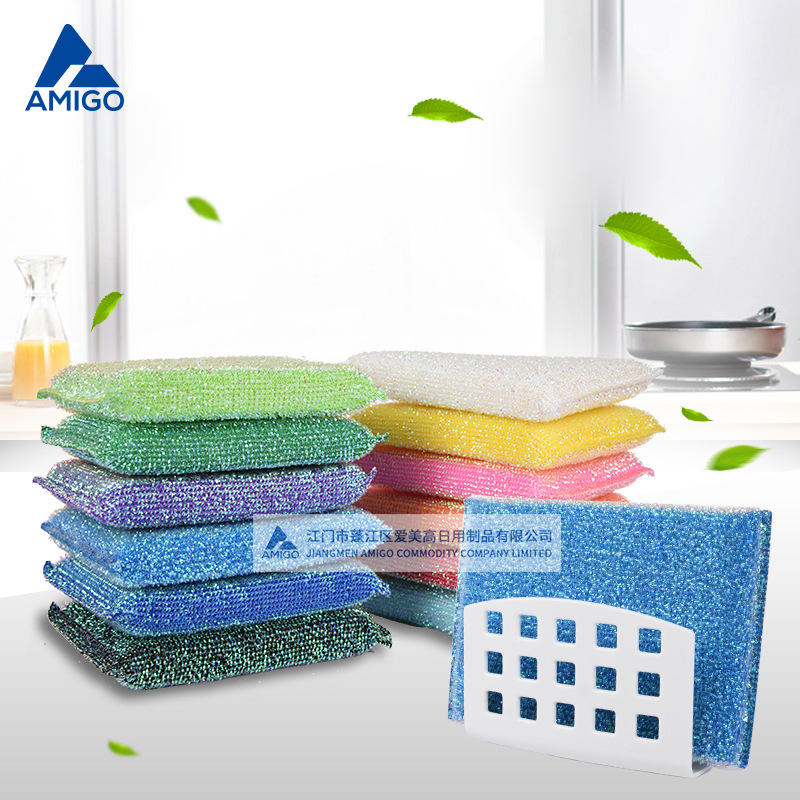 Éponges à vaisselle Amigo, rectangulaires, multicolores, tampons de nettoyage pour la cuisine avec support