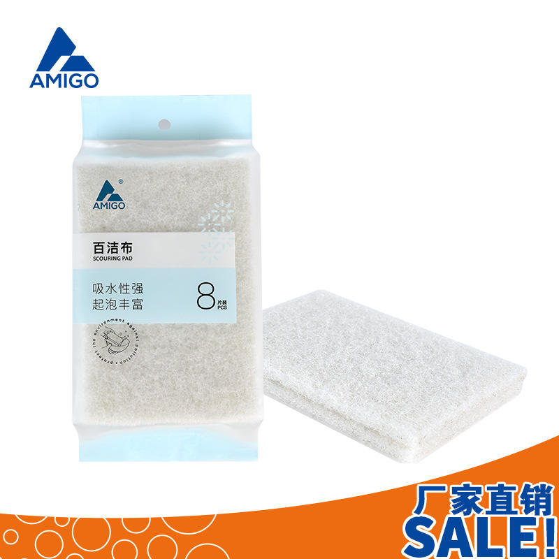 Éponge de cuisine Amigo, rectangulaire, blanche, double face, pour nettoyer les casseroles et les ustensiles