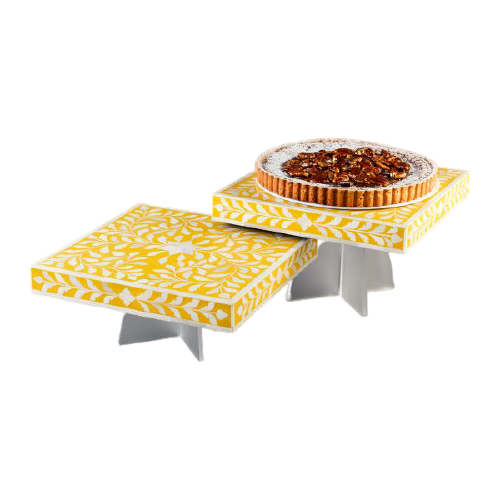 Collection Amira Porte-gâteau rond classique Incrustation de nacre naturelle Support à dessert pour cadeaux de fête et décoration intérieure élégante