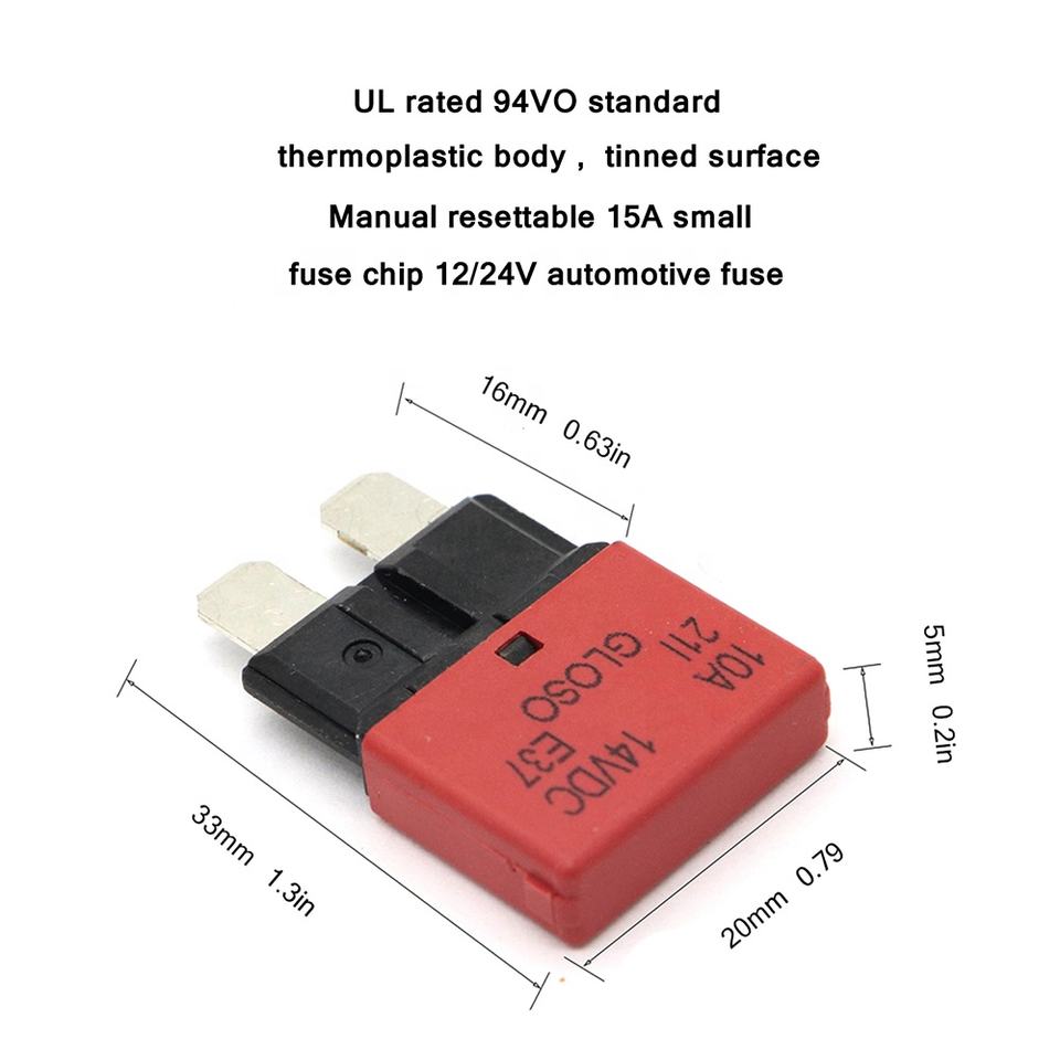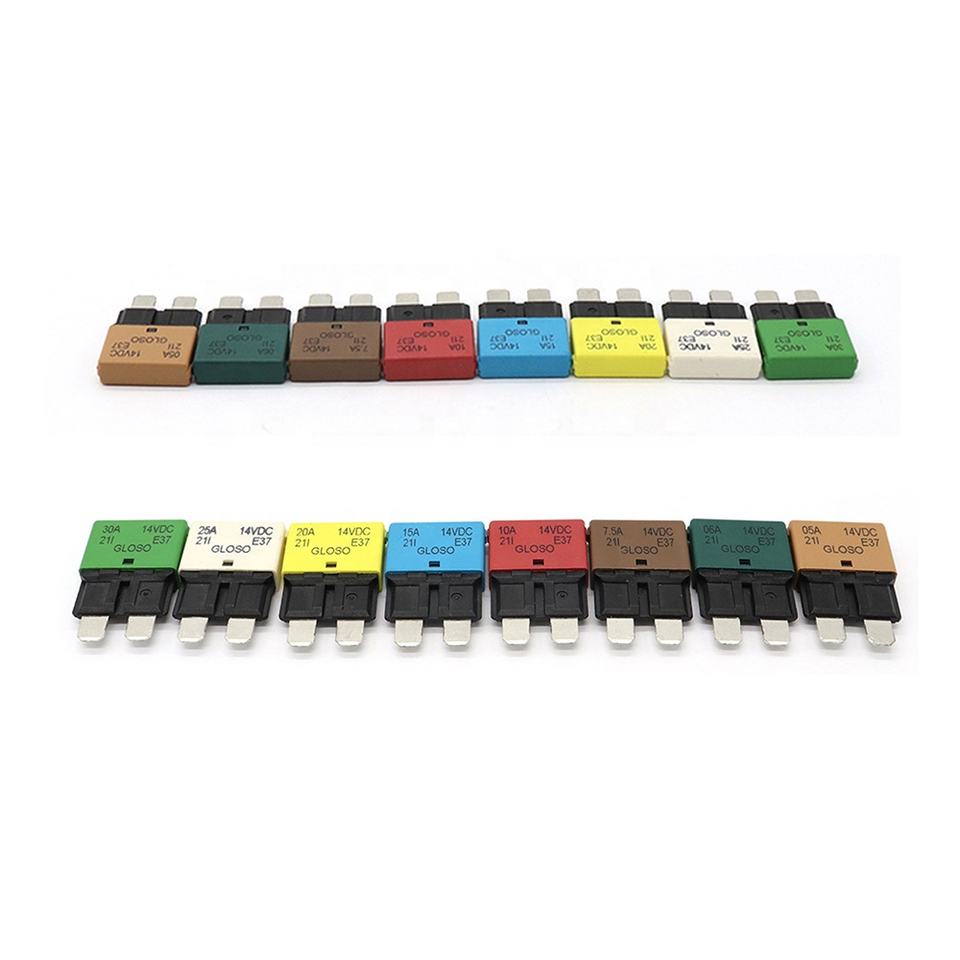 Amomd E3 DC 28V Disjoncteur de type thermique à fusible à lame à réinitialisation automatique à profil bas avec courant nominal 10A/25A/30A certifié CE