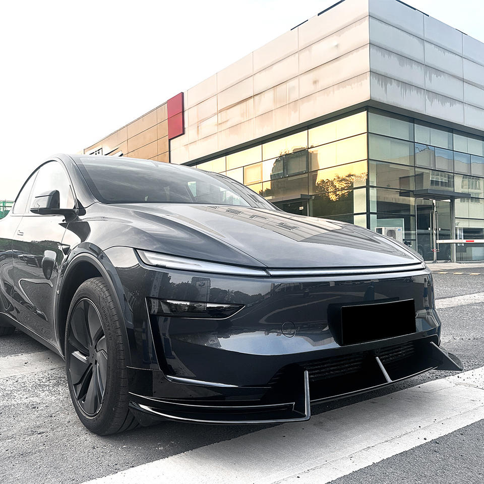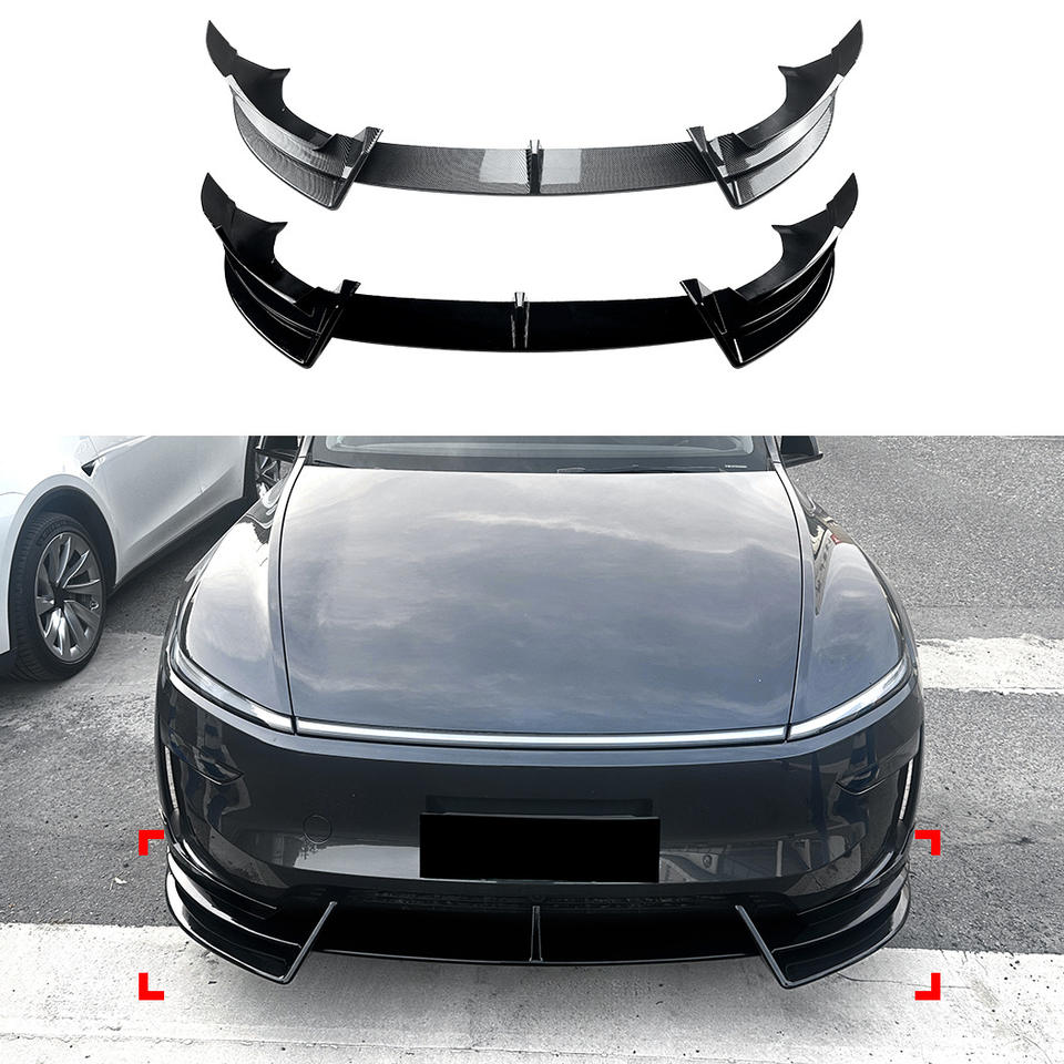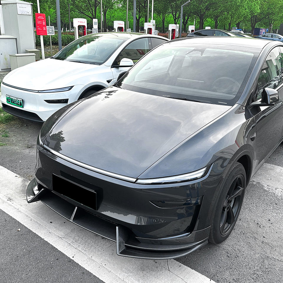 Amp-Z Tesla Model Y Front Bumper Lip 2024 Refresh Matte Black Carbon Fiber Texture Splitter Car Body Kit